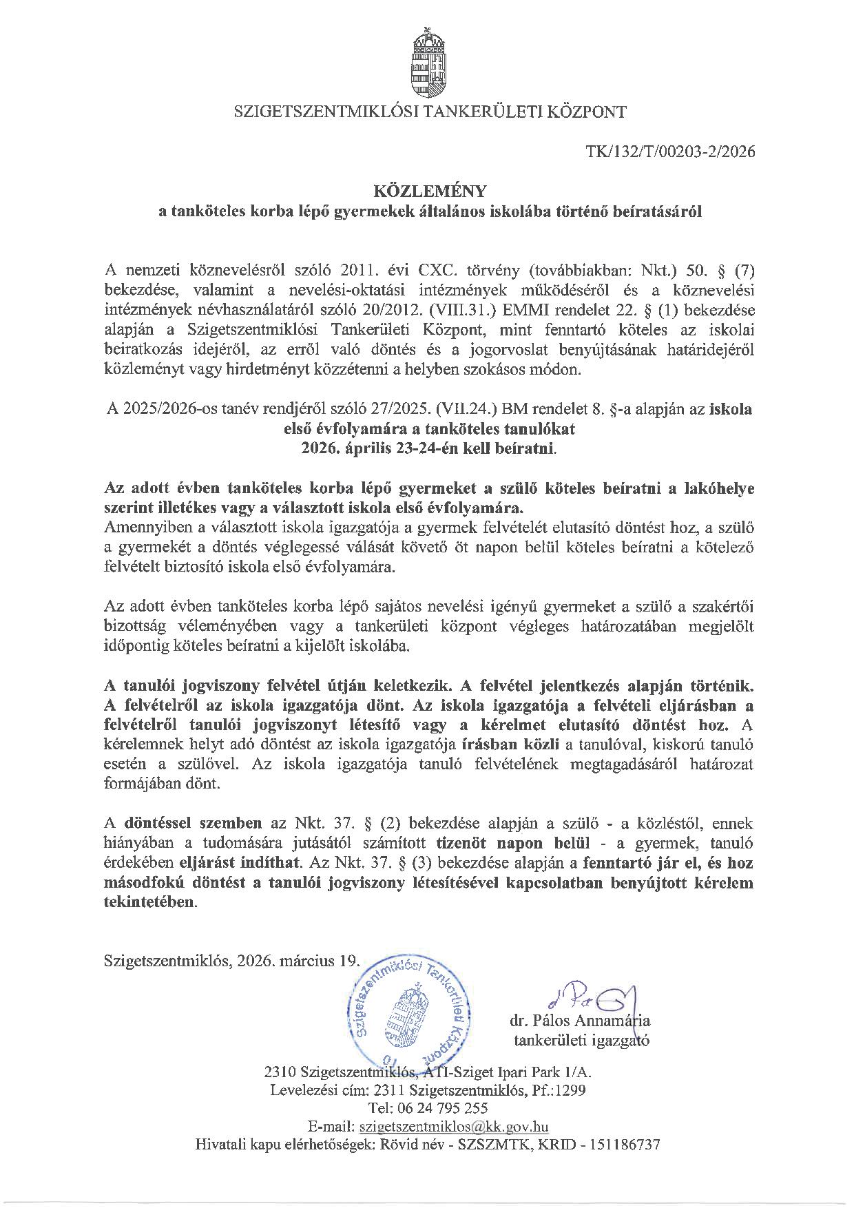 2026. 03. 27. | Közlemény